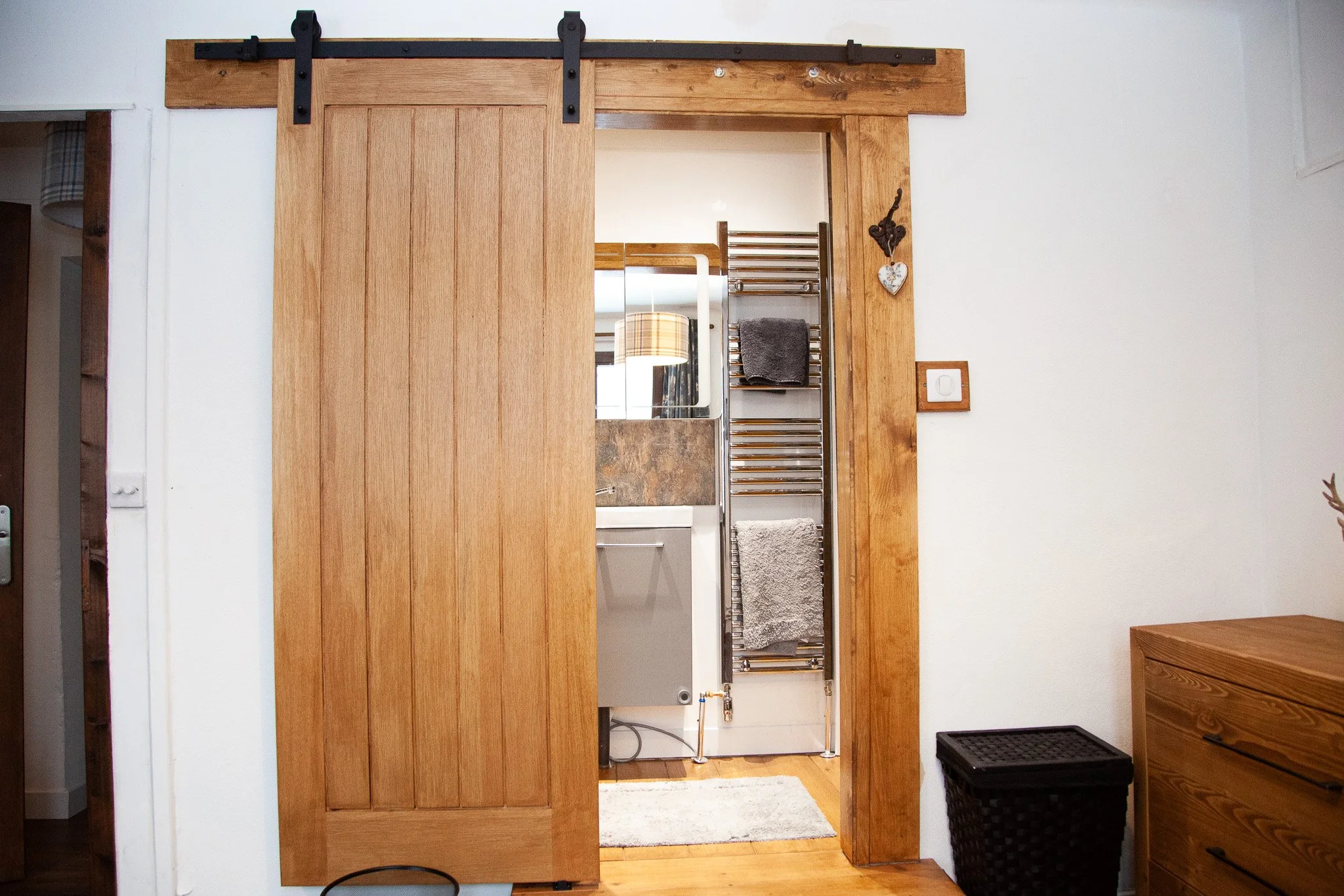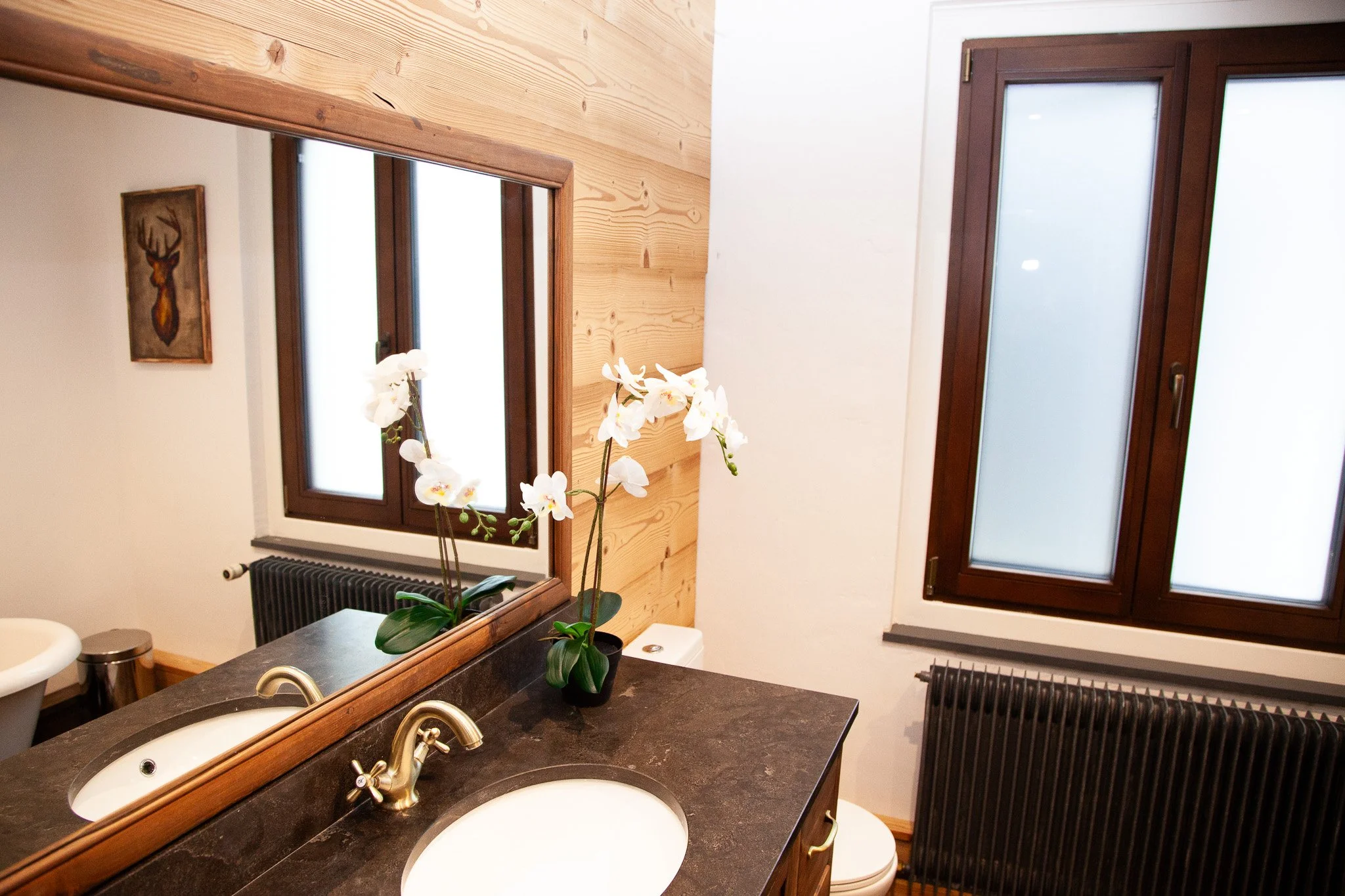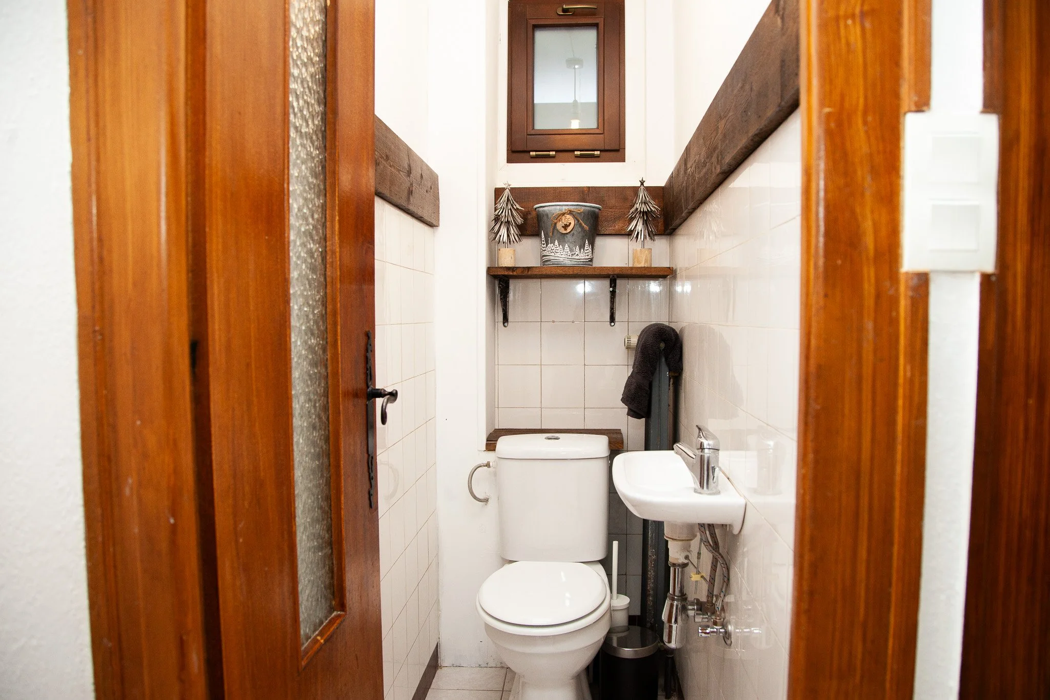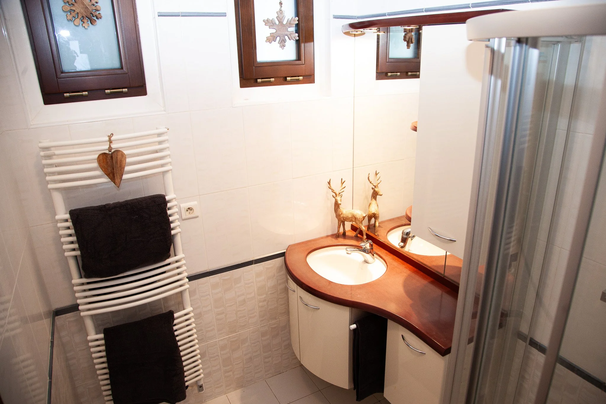 Family Bathroom between rooms 3 and 4 with roll top bath and large walk in monsoon shower.